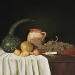 Geshilderd als serie van vier variaties op het thema wit emaille met groenten.