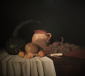 2020Geshilderd als serie van vier variaties op het thema wit emaille met groenten.